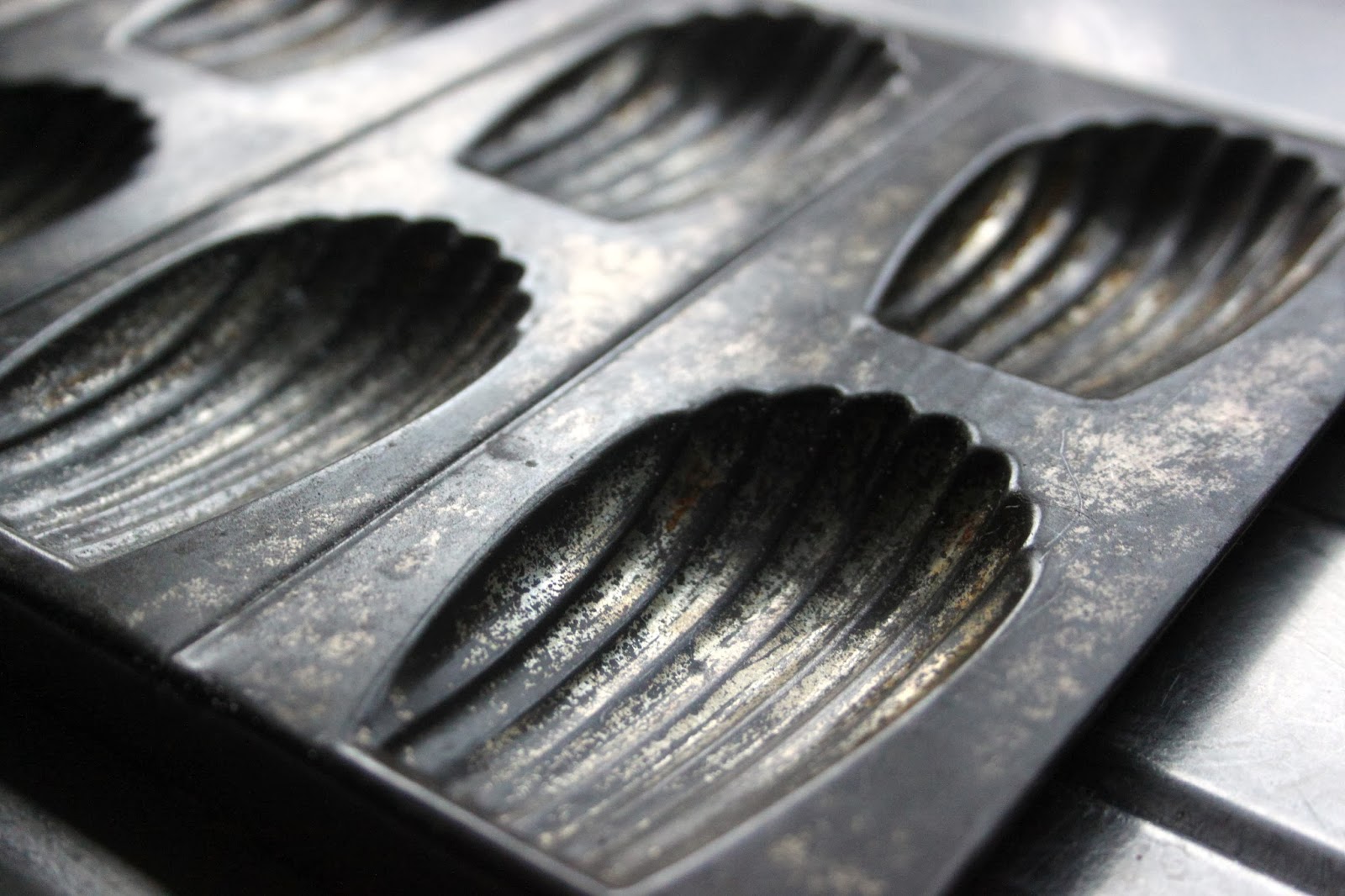 1, Preheat your oven to 190o/c and grease/flour/use copious amounts of cake release on two nine hole madeleine tins.