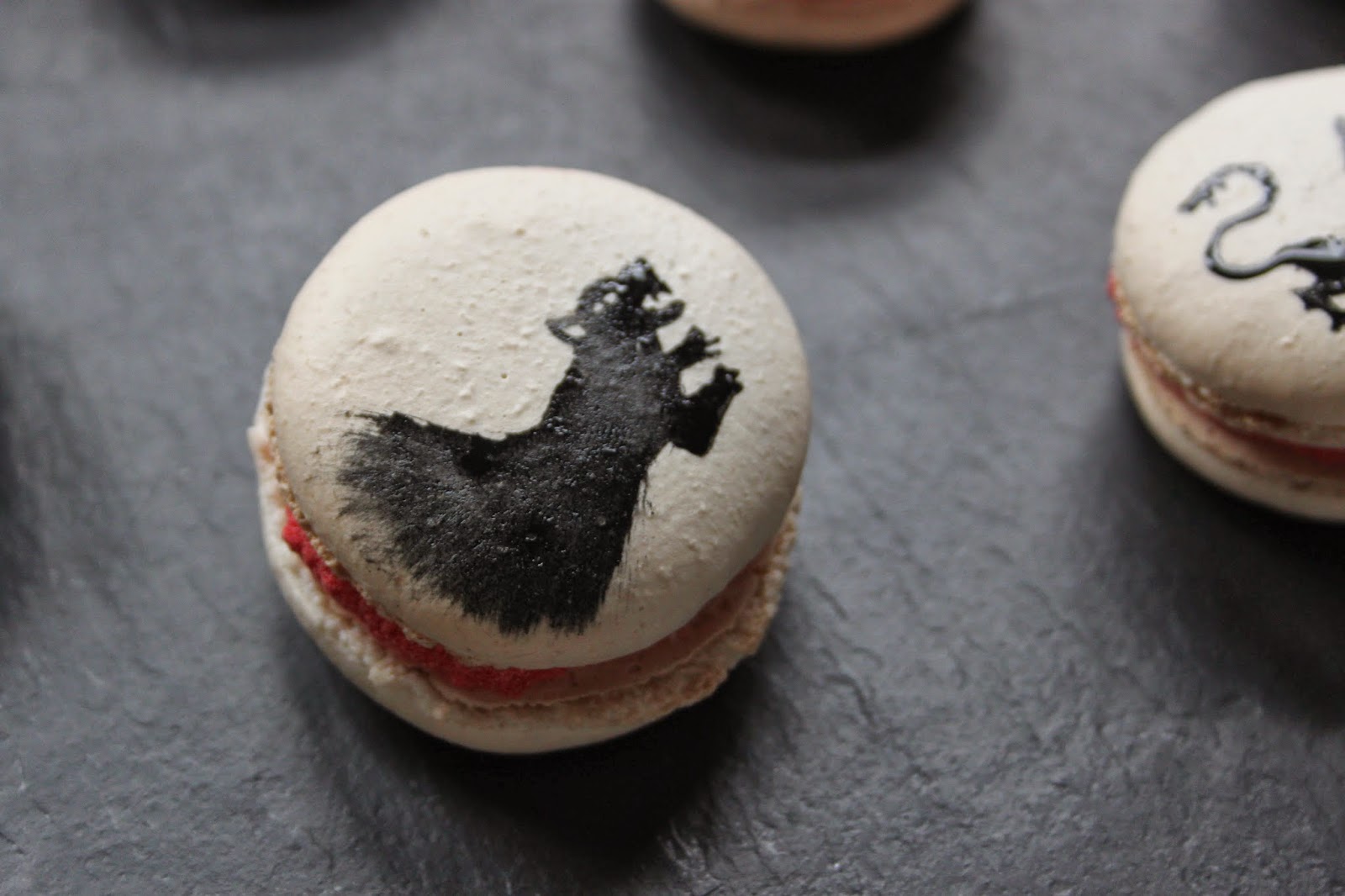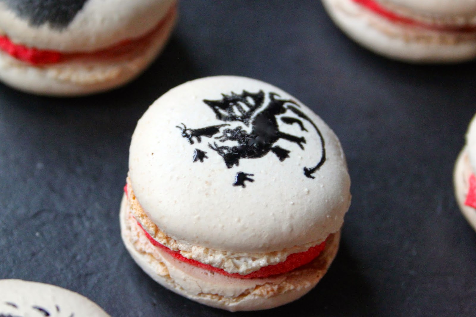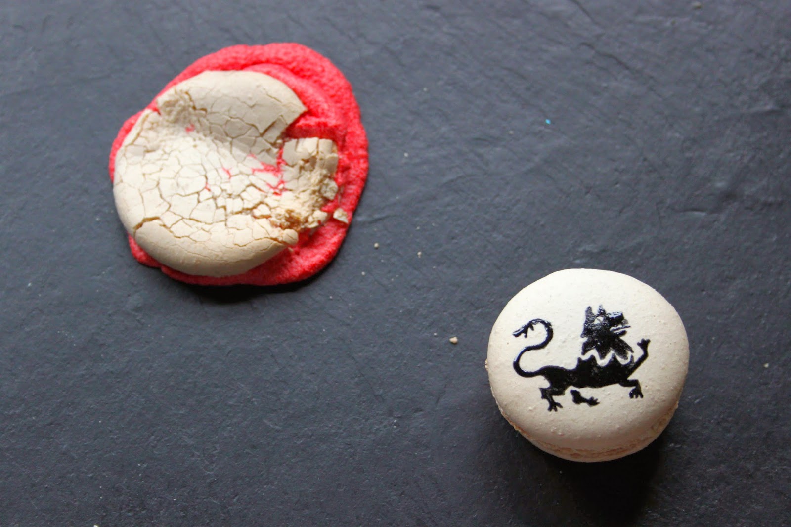 Macaron recipe from here. Basic red buttercream filling.