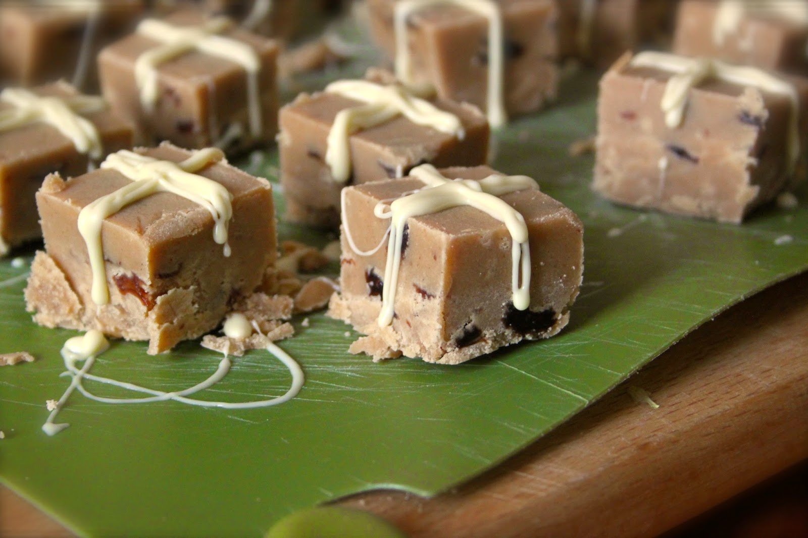 2, Stirring continuously bring it to soft ball temperature (118o/c) and then remove from the heat. Stir through the raisins, vanilla extract and mixed spice.